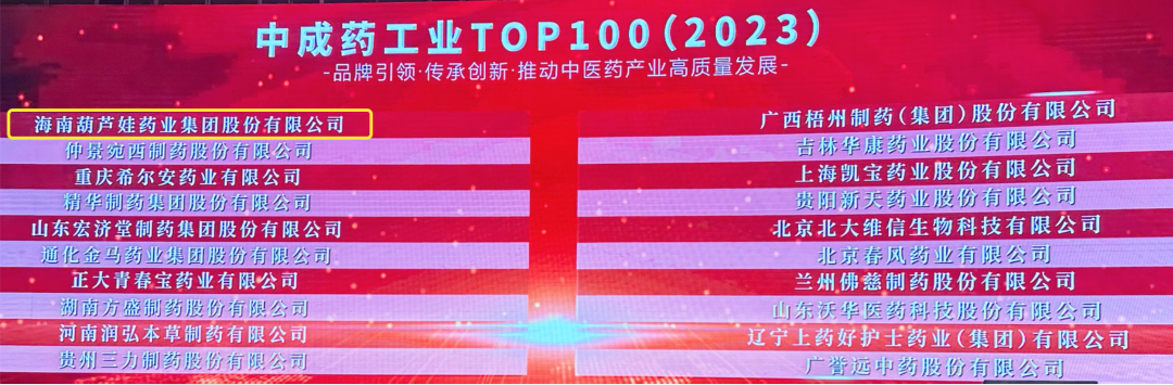 会上,还发布了“2023中成药工业TOP100”榜单,人生就是博药业集团荣耀上榜。